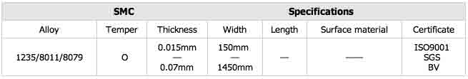 1) Thickness: 0.015mm - 0.07mm