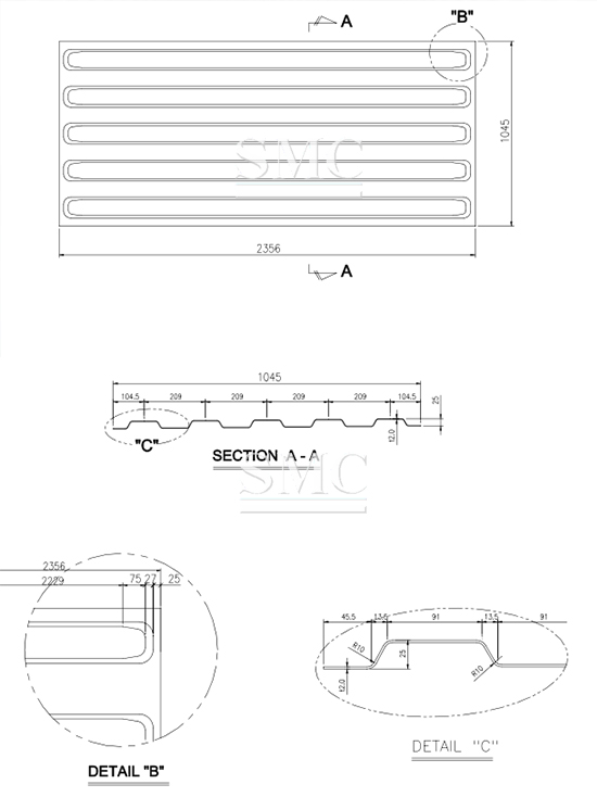 Container Roof Panel usually have standard size 2.0*1045*2356, one 20ft container need 5 pieces roof panel, 40ft container need 11 pieces roof panel. Not only we can supply 5 ripples container roof panel, if you need 4 ripples or 3 ripples, we also can produce for you.