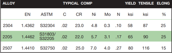The duplex structure gives this family of stainless steels a combination of attractive properties: