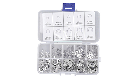 E-type retaining rings, commonly known as E-clips, are essential mechanical components used to secure parts on shafts or in grooves. Their unique “E” shape allows them to snap into grooves without requiring additional fastening tools, making them highly convenient for quick assembly and disassembly.