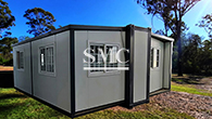 The expandable container house has space area with 37 or 74m2, has a beautiful open plan lounge and kitchen, with great size bathroom and literally folds out. On average, it takes our highly skilled and experienced team 1 day to construct on site. It is fully transportable and relocatable and can be packed up within hours with very little fuss. They are transported on a tilt tray and placed onto 12 foundations. And it comes with SAA approved wiring. The structure is galvanized steel with 50/75/100mm EPS sandwich panels, making the house very well insulated and keeping it cool in summer and warm in winter, and is compliant with an Australian engineers design certificate and form 15 for council. The house is very homely, bright, has plenty of windows for natural light and will deliver a fantastic return on investment, however you use it.
