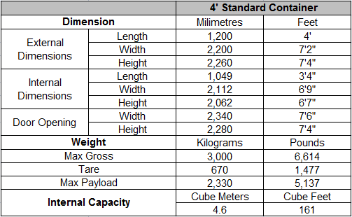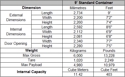 ISO 668 Series 1 freight containers-Classification, external dimensions and ratings.