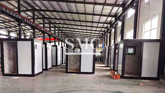 Portable Toilet is a special type of flatpack container house, which serves as a fast-to-use public lavatory. It is a single room with one closestool and one washbasin. We have simple options which are more cost-effective, and high-end options which are more elegantly decorated. Besides, single room solutions, we also have designs of one large room with several closestools and pissoirs. Like normal flatpack, Portable Toilet is transported unassembled in standard shipping containers, and can be easily assembled at site.