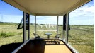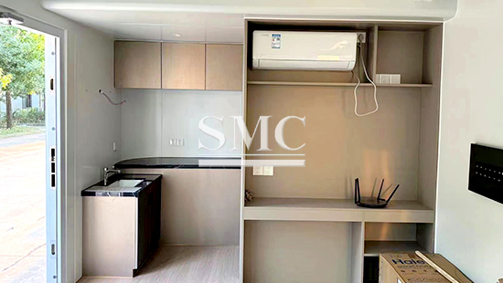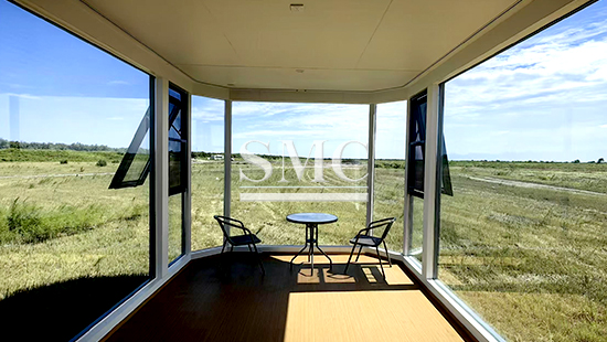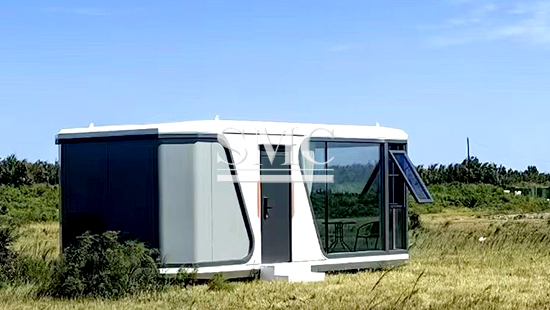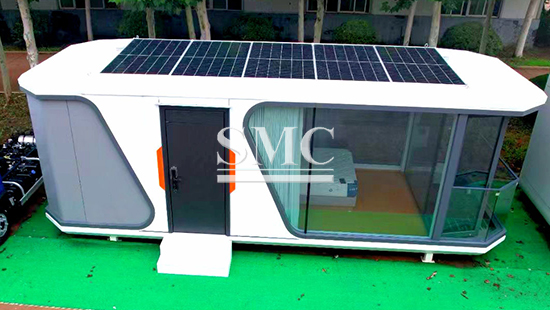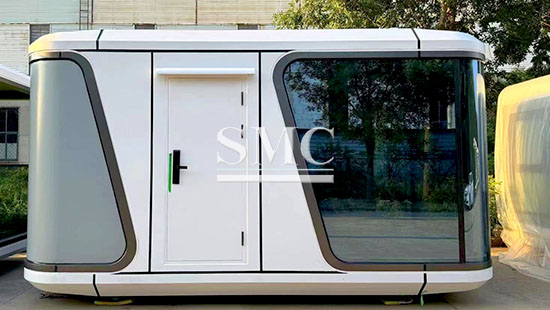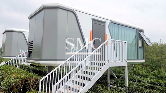 Space Capsule House is a new kind of Portable Container House, featuring modern exterior/interior design and convenience of installation. Unlike flatpack container or expandable container house, Space Capsule is transported as a whole by flat rack container, which saves the time of assembling. Also, all the internal decoration and devices are pre-installed, including furniture, air-conditioner, lights, sockets, bathroom, etc. We have several standard designs suitable for 2-4 residents, all with hot-dip galvanized bracket at the bottom of the container house as pedestal, and can be equipped with solar panels. We use weather-resistant AL-Mn-Mg alloy board as wall panels, with rock wool or polyurethane insulation, and we use panoramic wall curtain glass as windows. There is a whole set of waterproof and drainage system, and a balcony as well. You can expect a life span of more than 20 years for the Space Capsule, and it is easy to move it to other places.