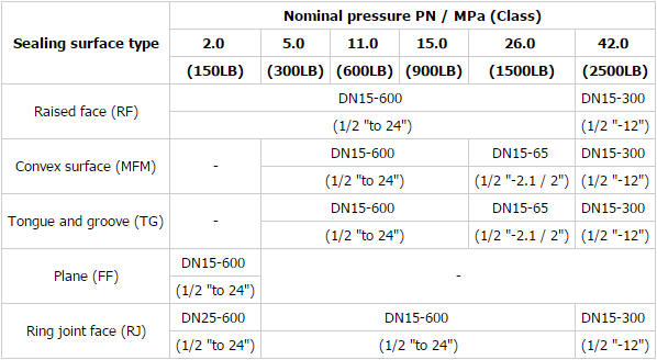 3. Size: ANSI B 16.5 from 1/2" to 24" and classes150 to 2500 (complete range)