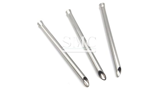 Hypodermic needles are normally made from a stainless-steel tube through a process known as tube drawing where the tube is drawn through progressively smaller dies to make the needle. The end is bevelled to create a sharp pointed tip letting the needle easily penetrate the skin. From straightforward cut and deburred tubes to complex medical devices or industrial parts, we have the capabilities and services to fabricate parts to your specifications. Custom fabricated machining examples of our work include cardiac surgical instruments, veterinary implants. Tube forming, tube swaging, and special finishes are easily handled by us.