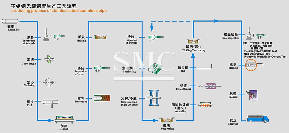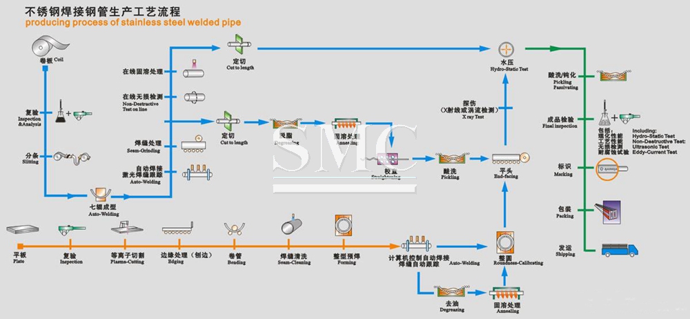 Manufacturing Process of Stainless Steel Pipes/Tubes: