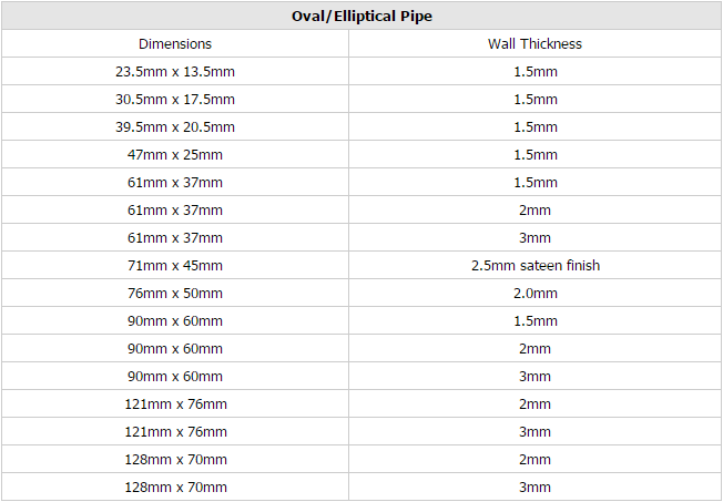 Dimensions of Oval/ Elliptical Pipe: