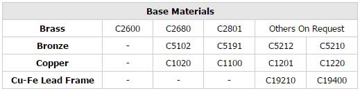 Base Material: Brass / Bronze / Copper / Lead Frame