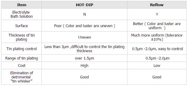 Reflow Tin Plating: Sn 0.8μm - 2.0μm