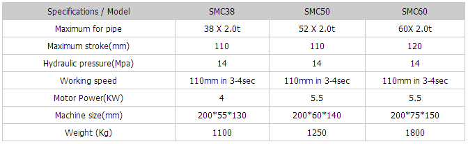 SMC has developed a group of tube end forming machines that are economically priced and quite versatile. These machines are all electrical driven and hydraulic powered. They are self-contained with motor, pump, valves and reservoir.